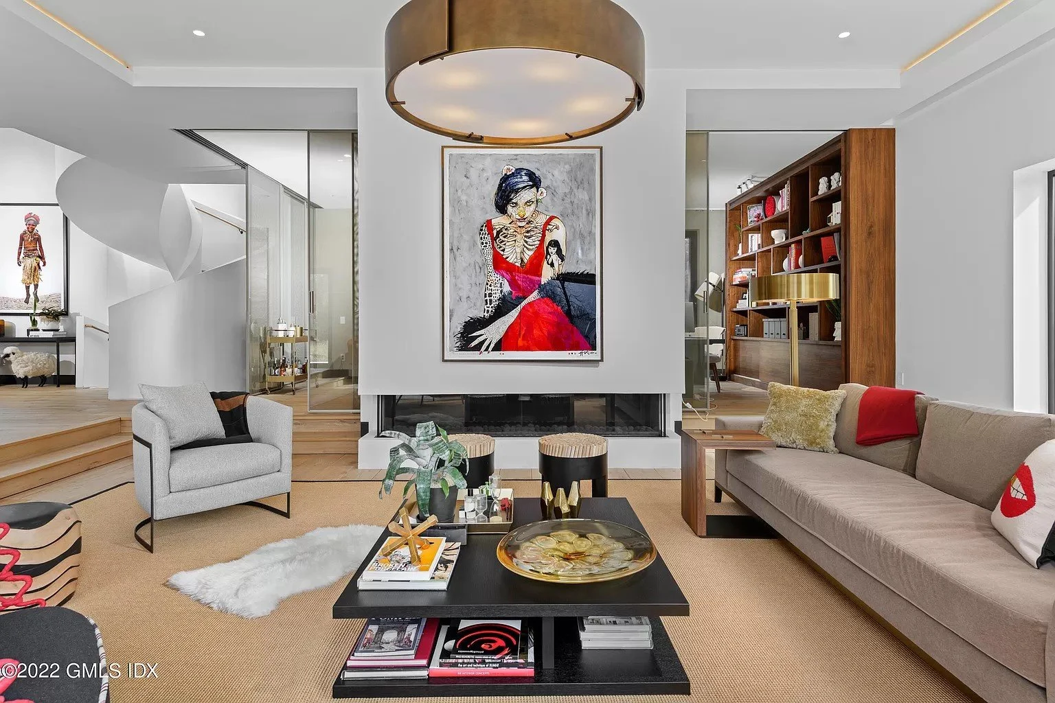 Located in mid country Greenwich, the home defines the art of contemporary living. The house totals 9800 sf and includes 6 bedrooms, 6 baths, large interior fitness center with living wall, wine cellar, billiards and media rooms. The interior design is inspired by NYC loft living. The exterior façade includes large oversized windows and doors which are placed to enhance the dialogue with the natural landscape elements. Many of the interior and exterior materials are sustainable and include Garapa wood siding, zinc panel roofing and reclaimed French oak floors, among others. The design extends to the outdoors with infinity pool, entertaining pavilion with kitchen, level lawns, masonry bridge, and new stone walls.
